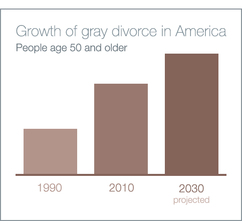 n fact, the divorce rate for these men and women doubled between 1990 and 2010. By 2030 it is projected to rise by an additional 30%.